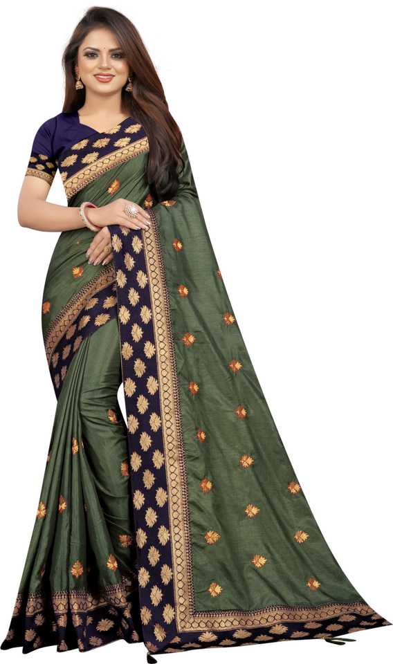 Embroidered Banarasi Art Silk Saree (Light Green)